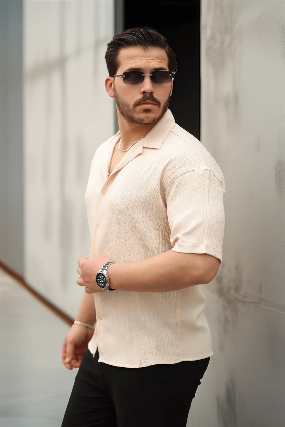 طقم تي شيرت رجالي سادة بياقة قميص وأكمام قصيرة وأزرار - Beyond Store