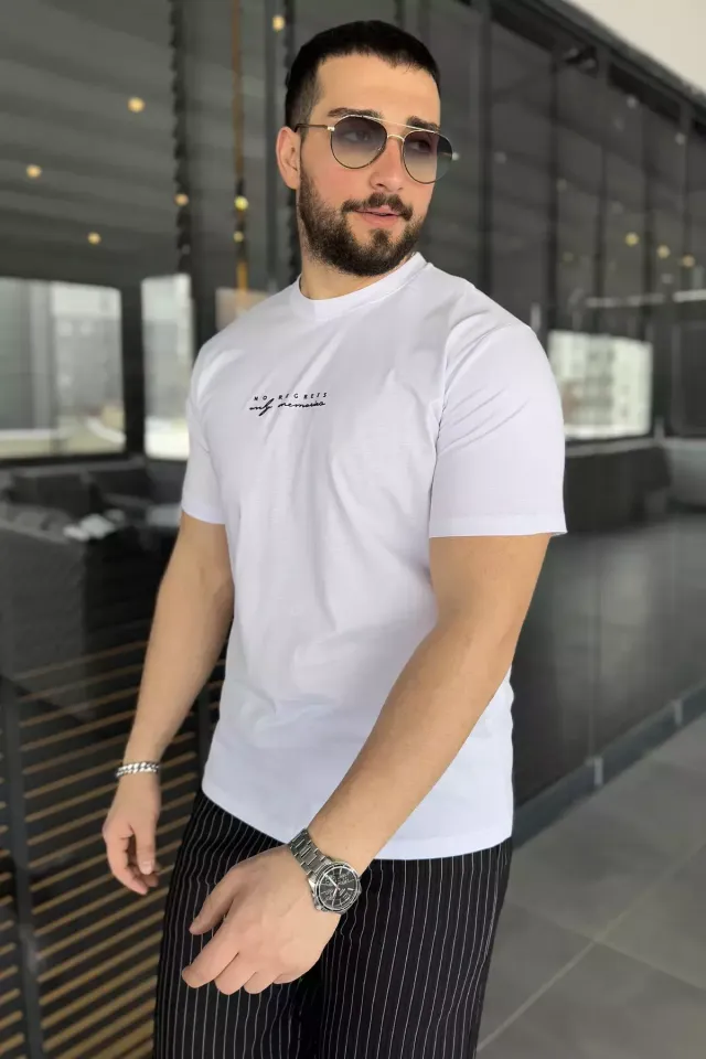 تي شيرت رجالي مطبوع بياقة دائرية وأكمام قصيرة - Beyond Store