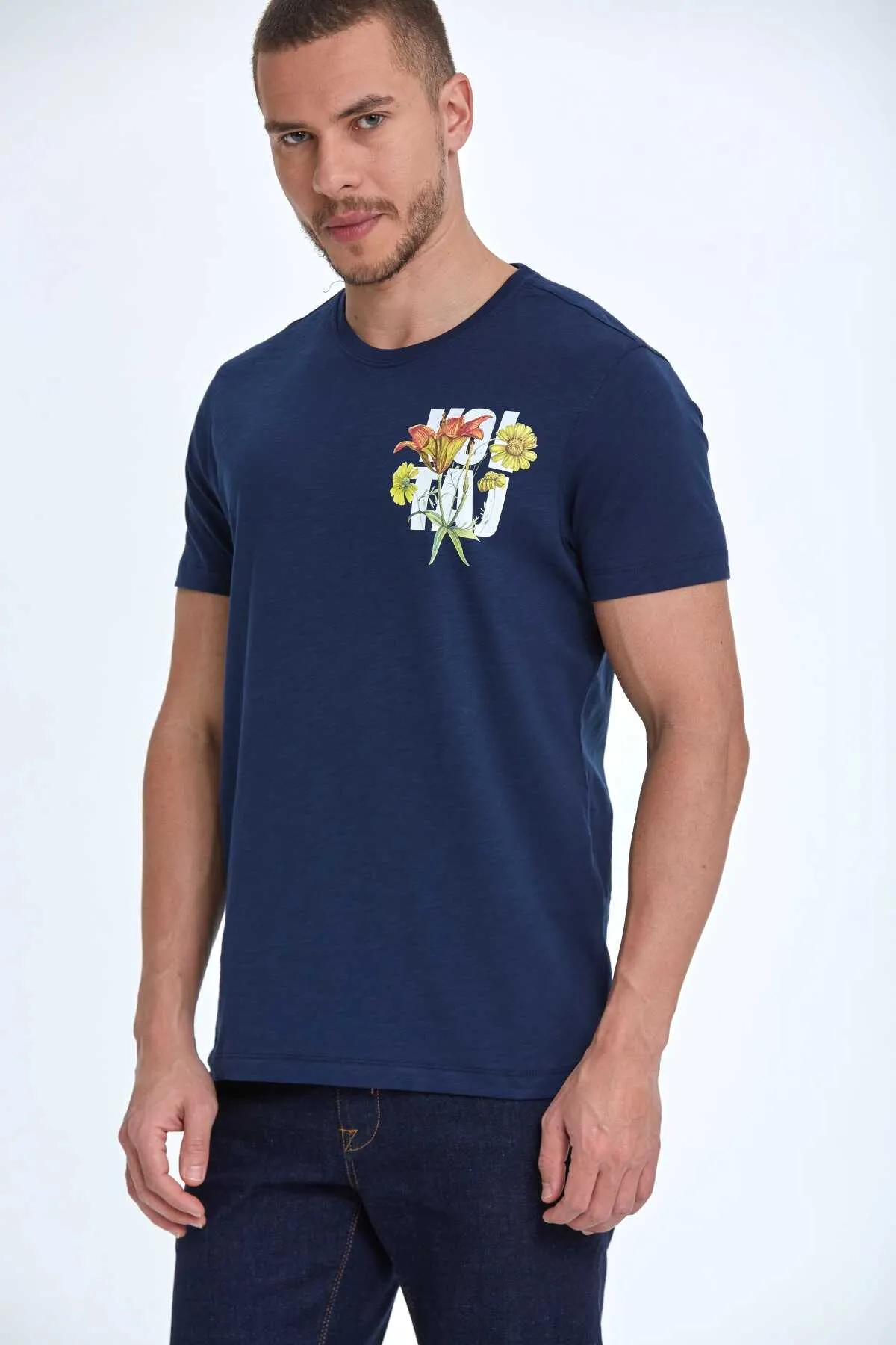 تيشيرت رجالي مصنوع من مزيج من الأقمشة المرنة والمريحة: ٦٠٪ فيسكوز، ٣٢٪ بولي بيوتيلين، و٧٪ إيلاستين. يُغسل على درجة حرارة ٣٠ درجة مئوية.