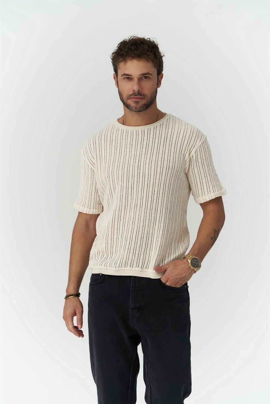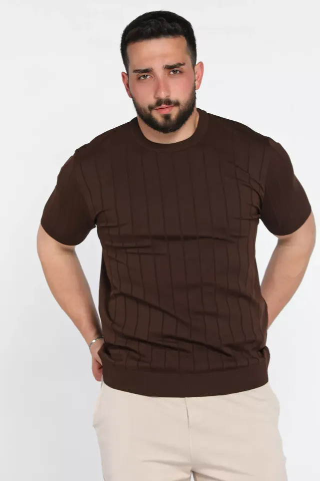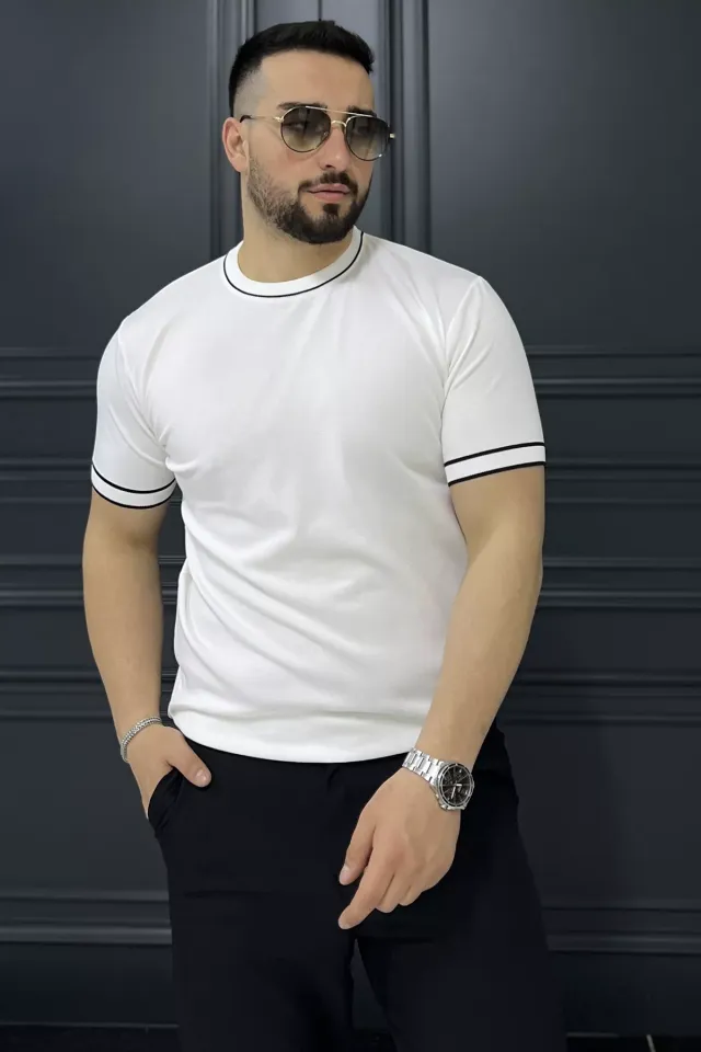 تيشيرت رجالي بقصّة عادية، مصنوع من قماش قطني ناعم ومريح ١٠٠٪. يُغسل على درجة حرارة ٣٠ درجة مئوية.