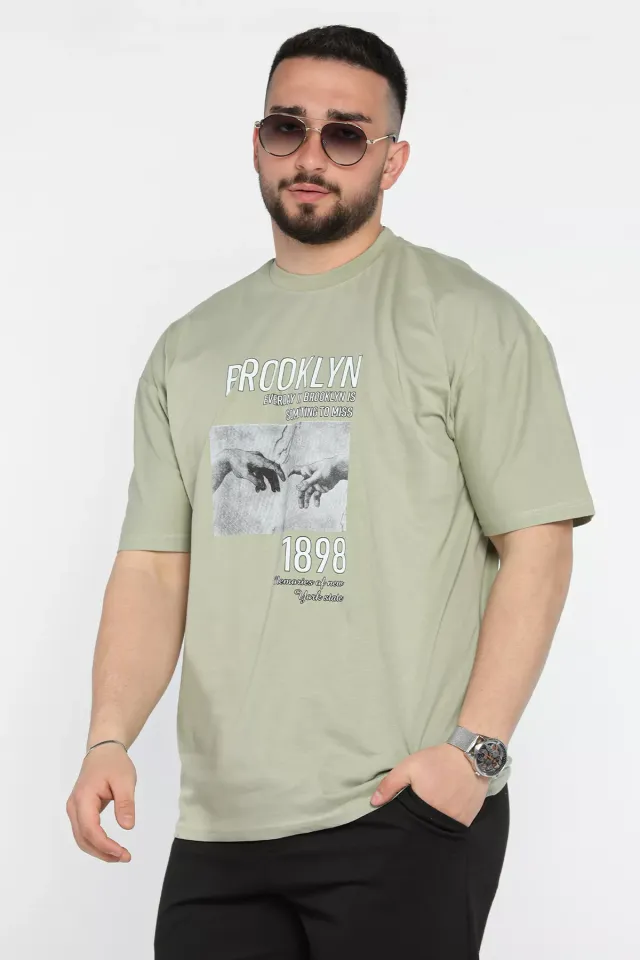 تيشيرت رجالي بقصّة عادية، مصنوع من قماش مريح، ٦٥٪ بوليستر و٣٥٪ فيسكوز. يُغسل على درجة حرارة ٣٠ درجة مئوية.