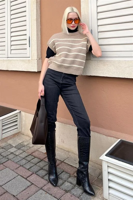 كنزة كروب تريكو واسعة بياقة دائرية مع تفصيل مخرم لإطلالات شتوية عصرية