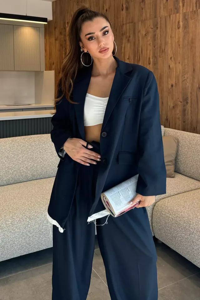بليزر نسائي مخطط بأكمام طويلة وقصة مريحة
