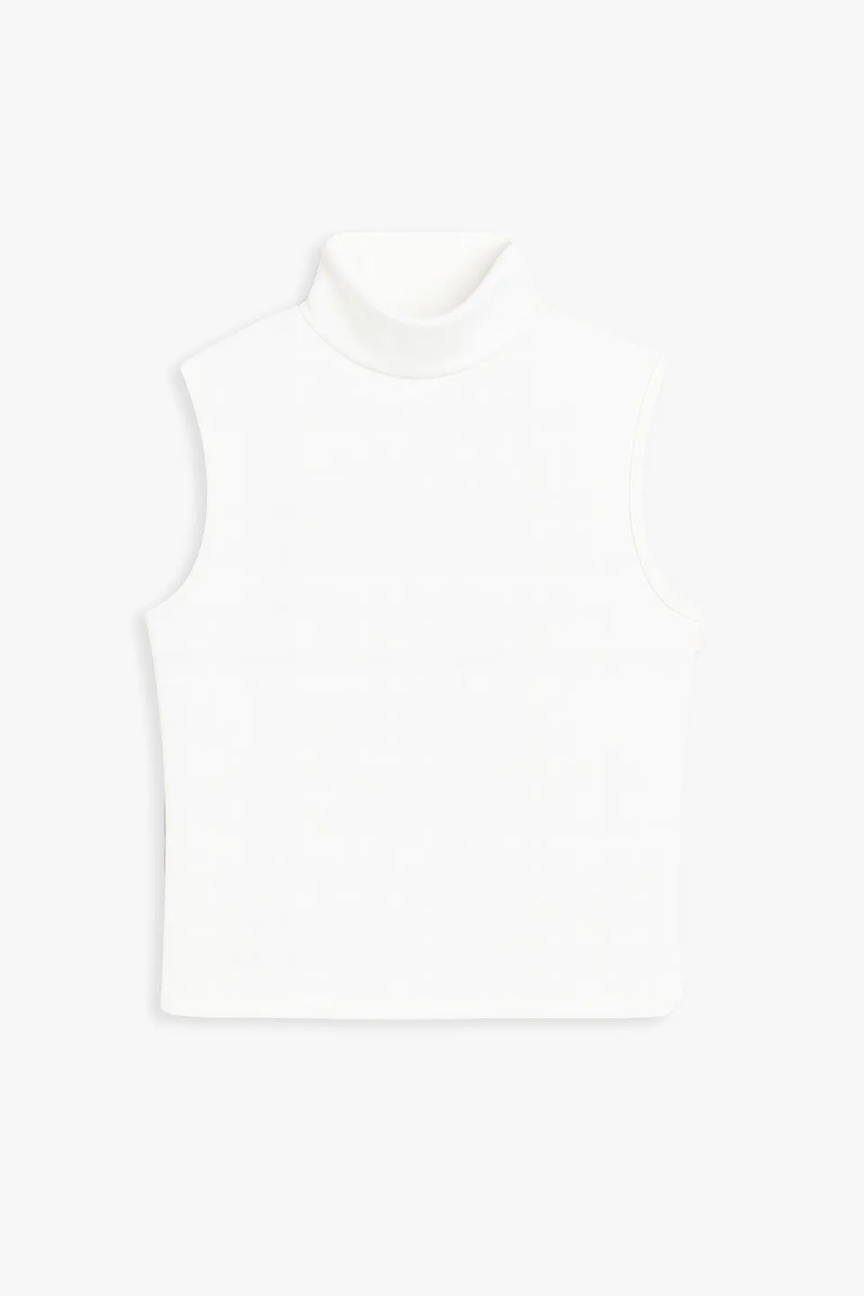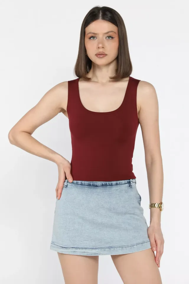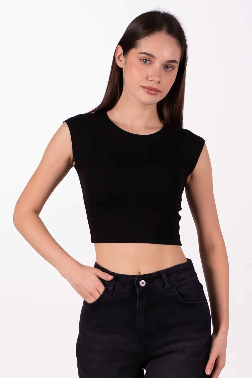 توب كروب جينز نسائي بدون حمالات مع حزام وتفاصيل أزرار