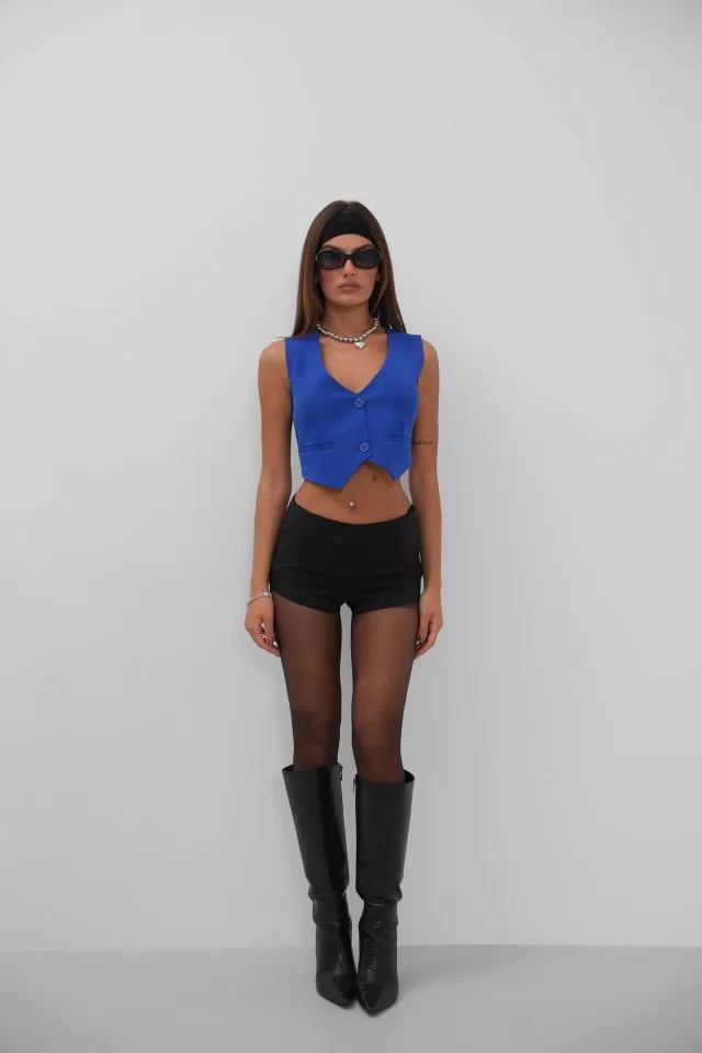 فيست تريكو طويل بأزرار أمامية وياقة دائرية بدون أكمام خيار أساسي لطبقات العيد وإطلالات الصيف الأنيقة