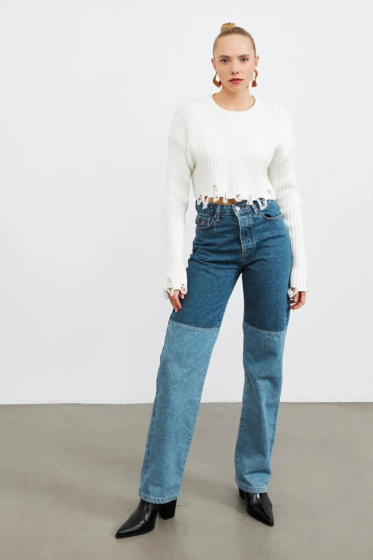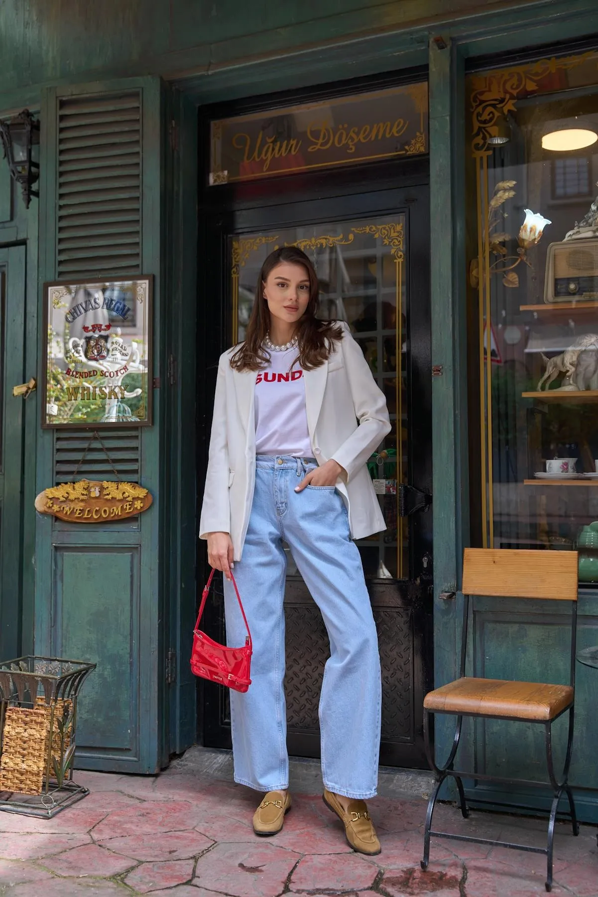 جينز سكيني بقصة عادية مع تفاصيل حجرية، بقصة ضيقة مريحة وأنيقة لإطلالات الصيف الكاجوال.