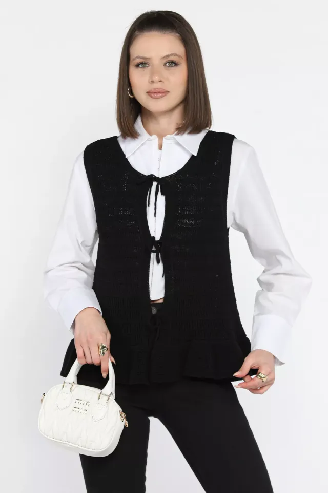 فيست مبطن بتفصيل رباط أمامي وجيب للنساء