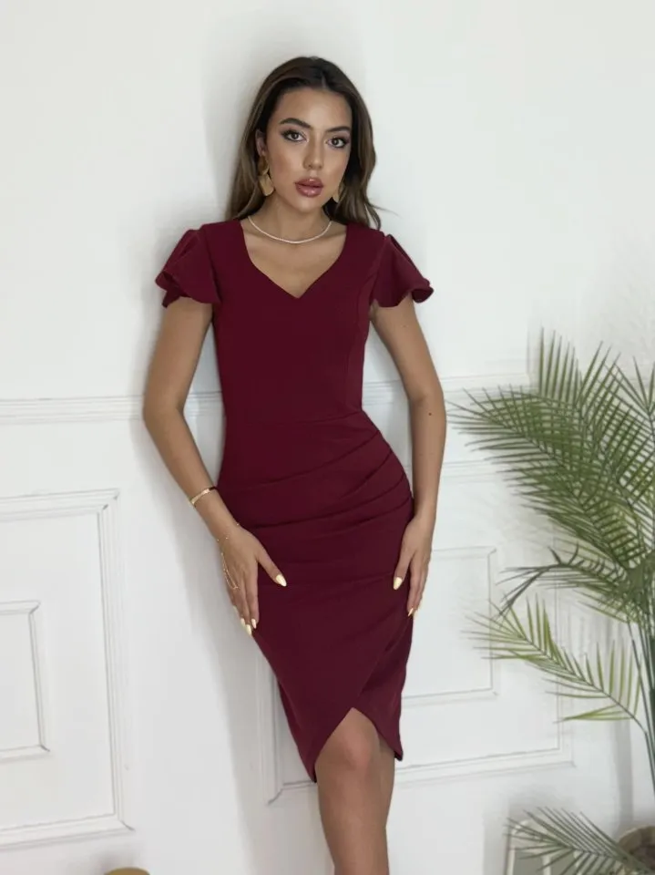 عيشي إحساس الصيف مع فستان ميدي كيوت من الساتان بقصة A وملمس مجعد وياقة V لإطلالة مريحة للنساء.