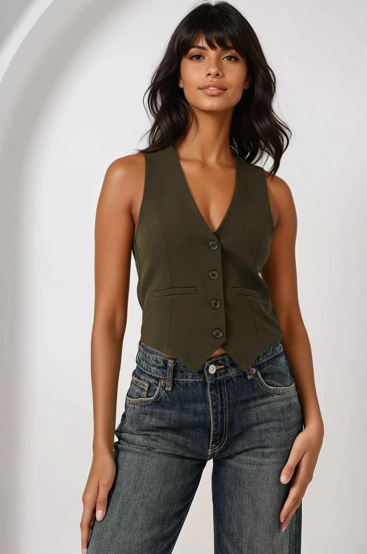فيست بدون أكمام بياقة V وسحاب مزدوج خيار عملي لإطلالات العيد والصيف اليومية