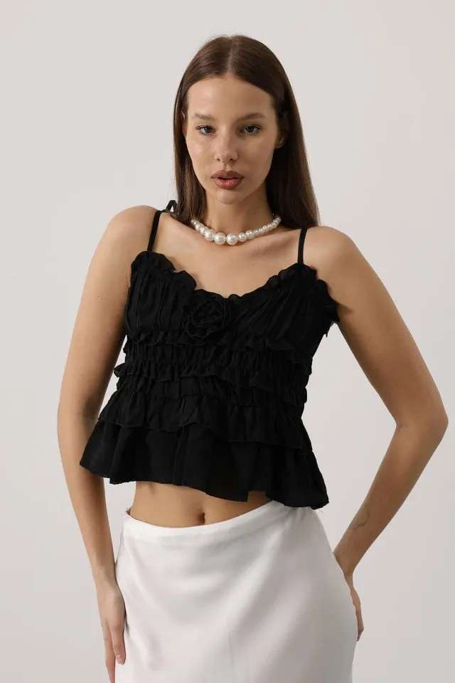 بلوزة بكم طويل مجعد بياقة مربعة وأكمام بالون للنساء