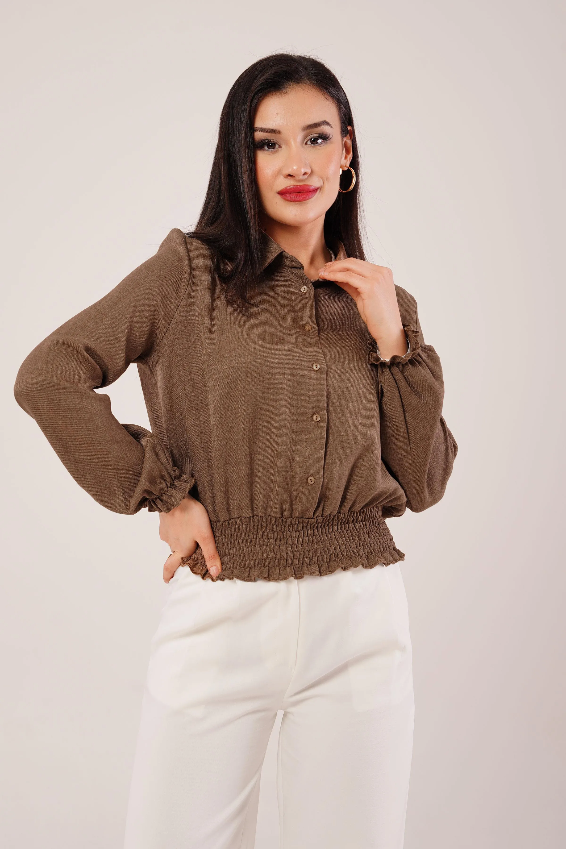 بلوزة تريكو بياقة V وأكمام قصيرة مع إكسسوار أنيق وقصة مريحة، ستايل عملي للعيد وكل يوم.