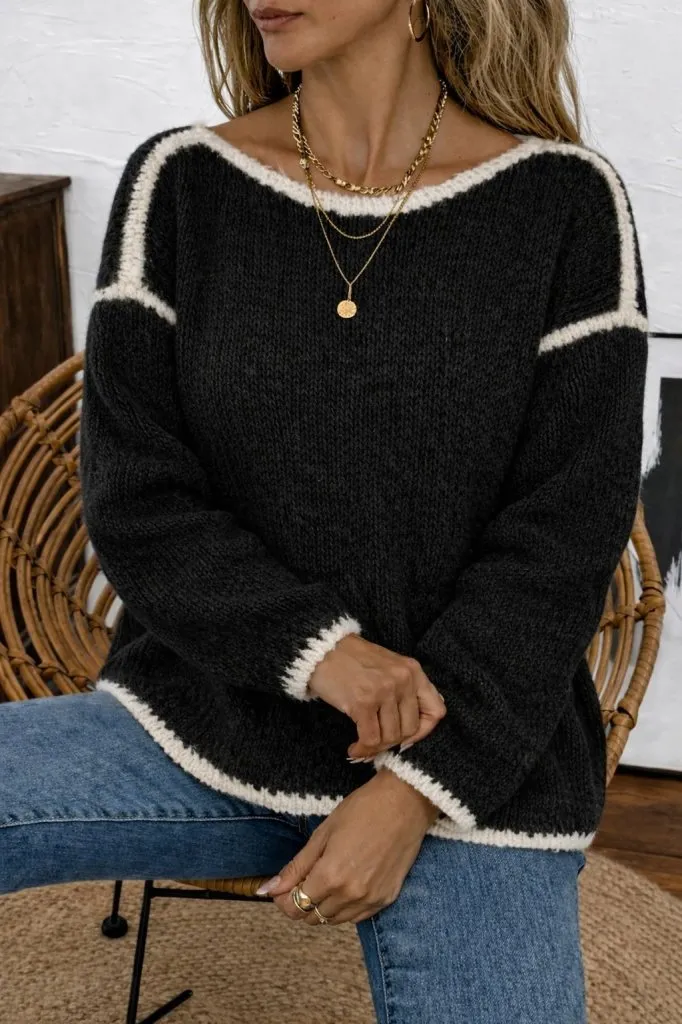 بلوزة بدون أكمام تريكو بياقة V وتفصيل مخرم وقصة مريحة