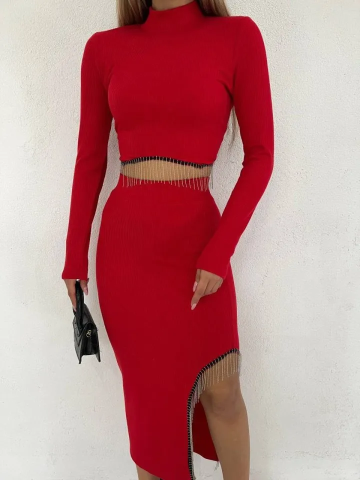 طقم بلوزة بدون أكمام و تنورة بطيات للنساء - Beyond Store