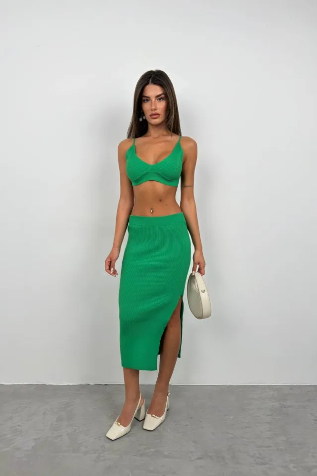 طقم كتان مكون من بلوزة بدون أكمام وتنورة ماكسي بطيات، تصميم خفيف وأنيق مثالي لأيام الصيف والإطلالات الكاجوال الراقية.