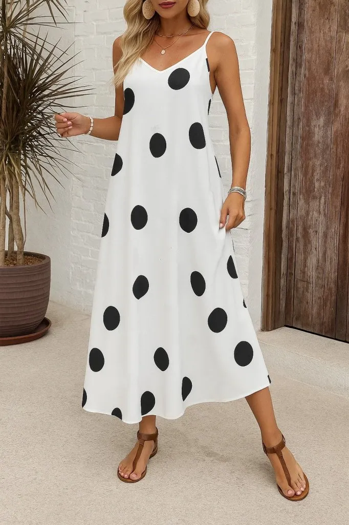 فستان ميدي شيفون مزين بنقشة زهور بقصة بدون أكمام مع أكمام عادية وياقة V وتفاصيل كشكش وشق جانبي، تصميم أنيق وخفيف للعيد والصيف.