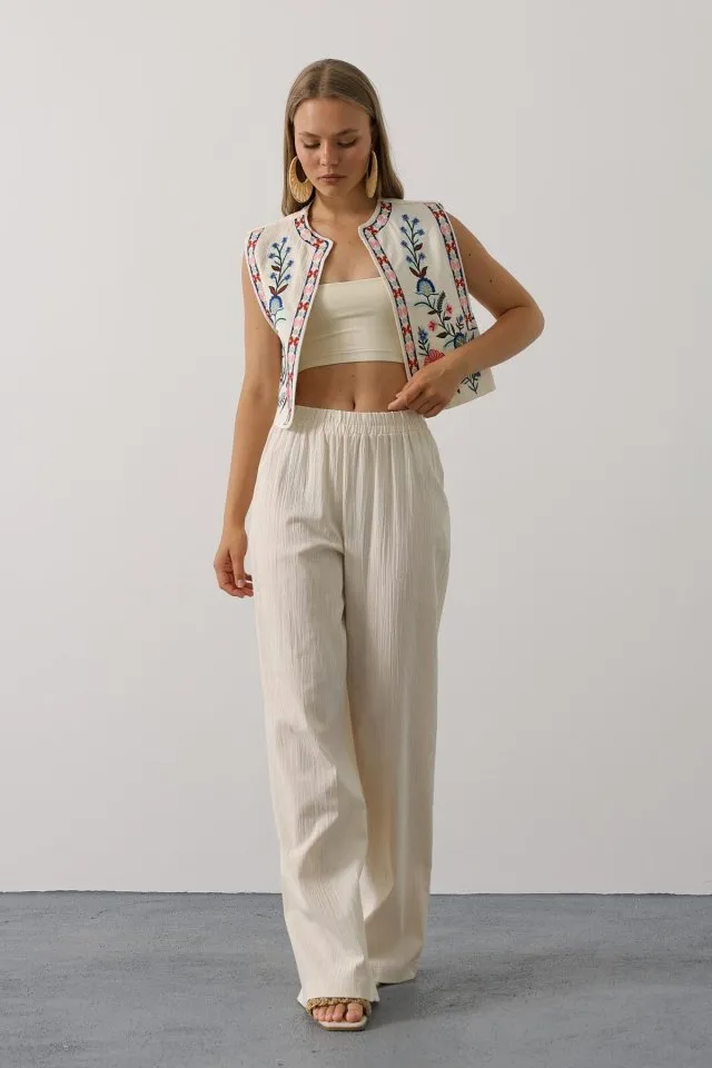 طقم بنطلون نسائي مخرم بأكمام طويلة - Beyond Store
