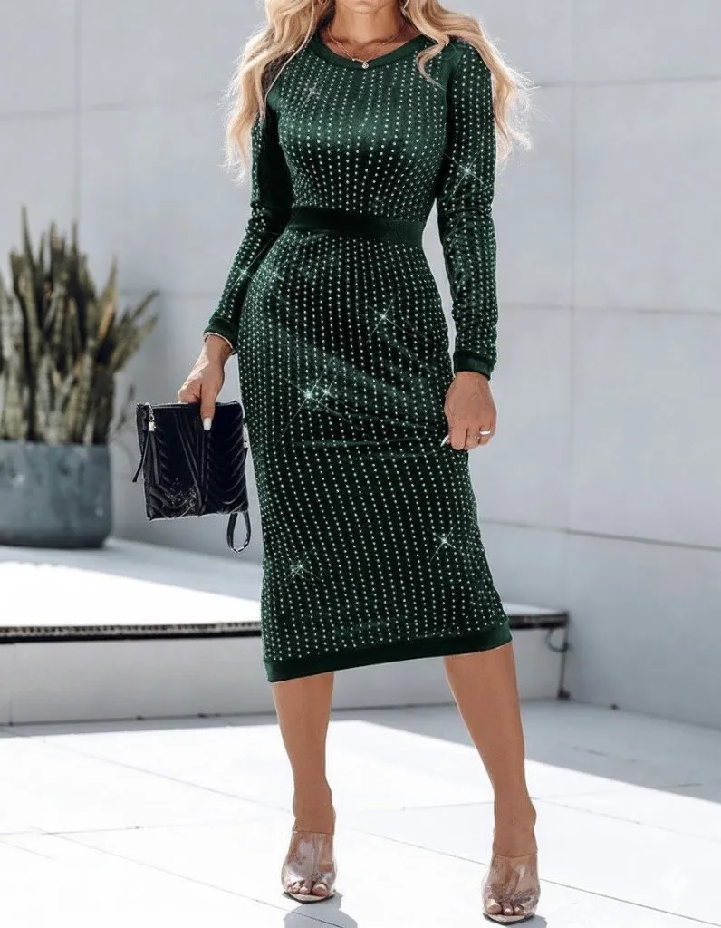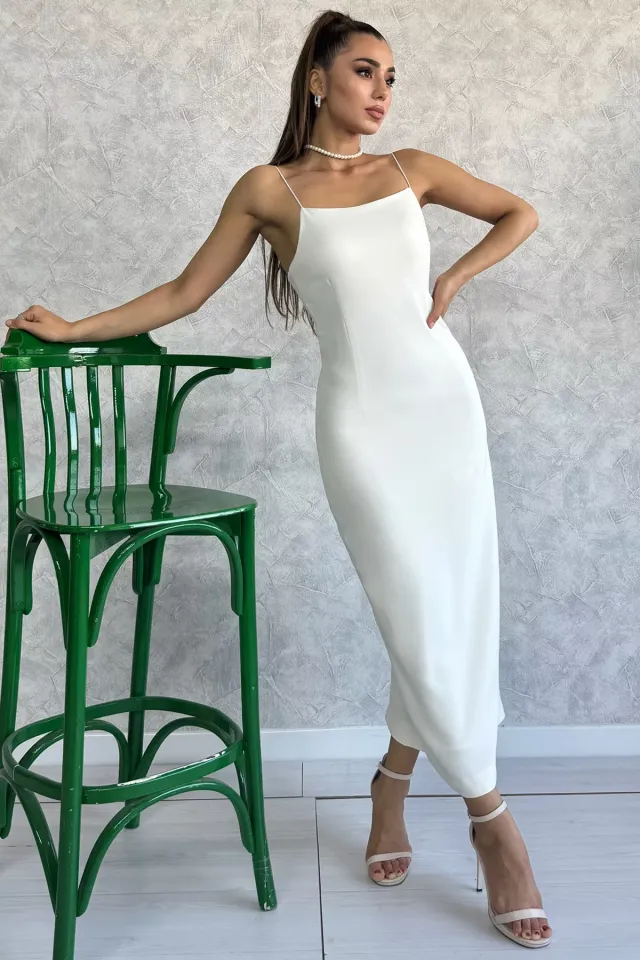 فستان ميدي كلوش مزين بدانتيل بياقة مربعة وحمالات رفيعة، تصميم خفيف وأنيق لإطلالات الصيف والعيد.