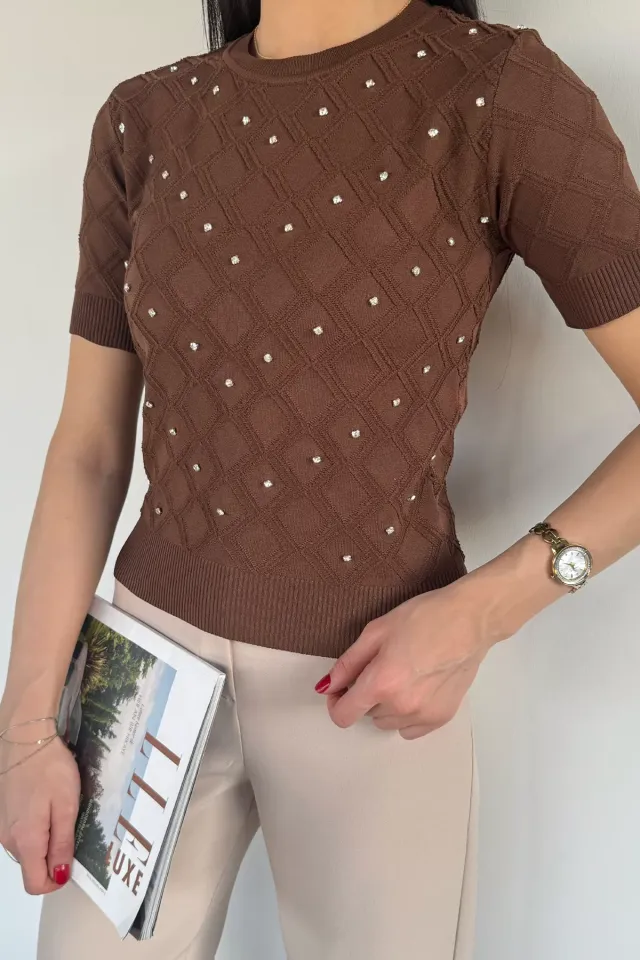 بلوزة ساندي بياقة V بقصة واسعة وسحاب أمامي - Beyond Store