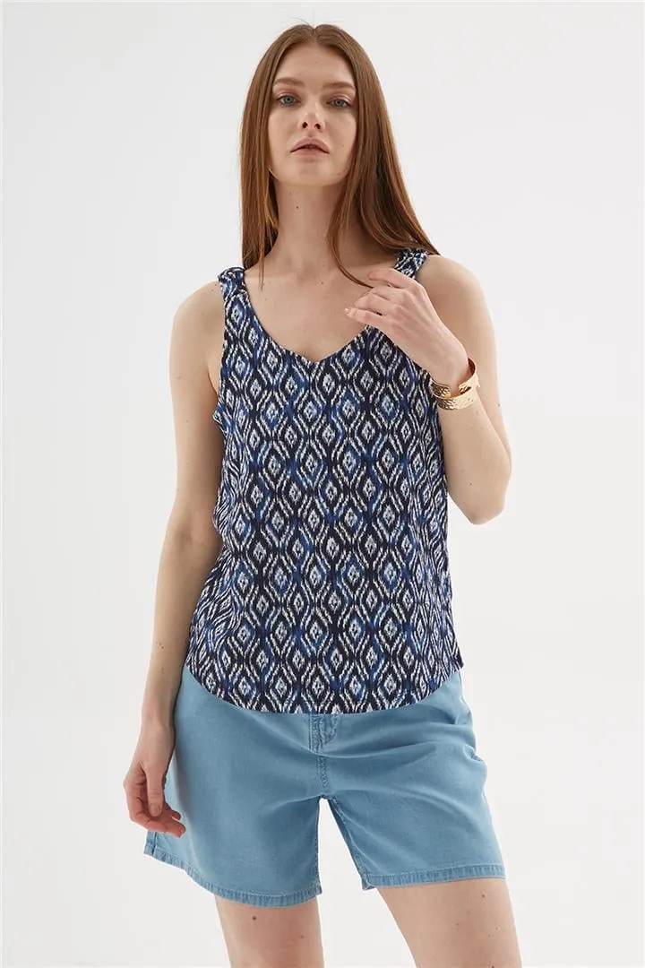 بلوزة فيسكوز بياقة U وتفصيل حلقة بدون أكمام وقصة مريحة للعيد والصيف للنساء - Beyond Store