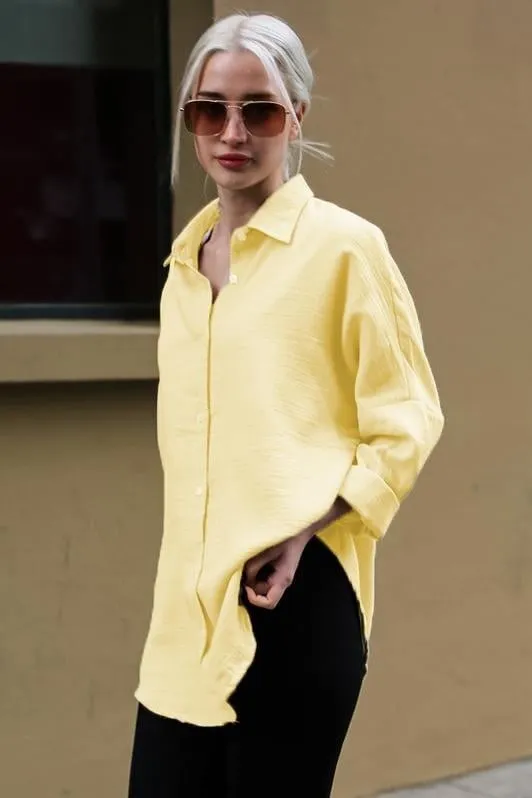 قميص نسائي مخطط بأكمام طويلة، بياقة وأساور بيضاء، وجيوب أمامية مزدوجة لمزيد من العملية. مزيج مثالي من الراحة والأناقة، مناسب للإطلالات الكاجوال والرسمية.