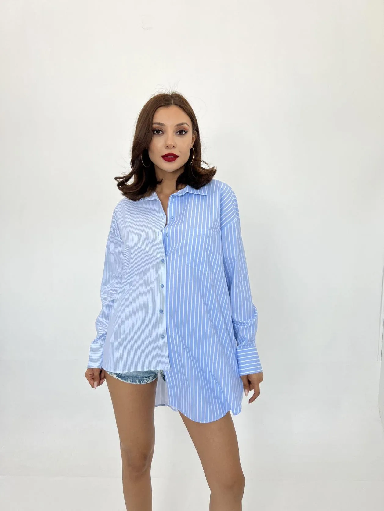 قميص نسائي بأكمام قصيرة ومنقوش، مصنوع من قماش خفيف ومريح يناسب الطقس الحار. أنيق وسهل العناية.