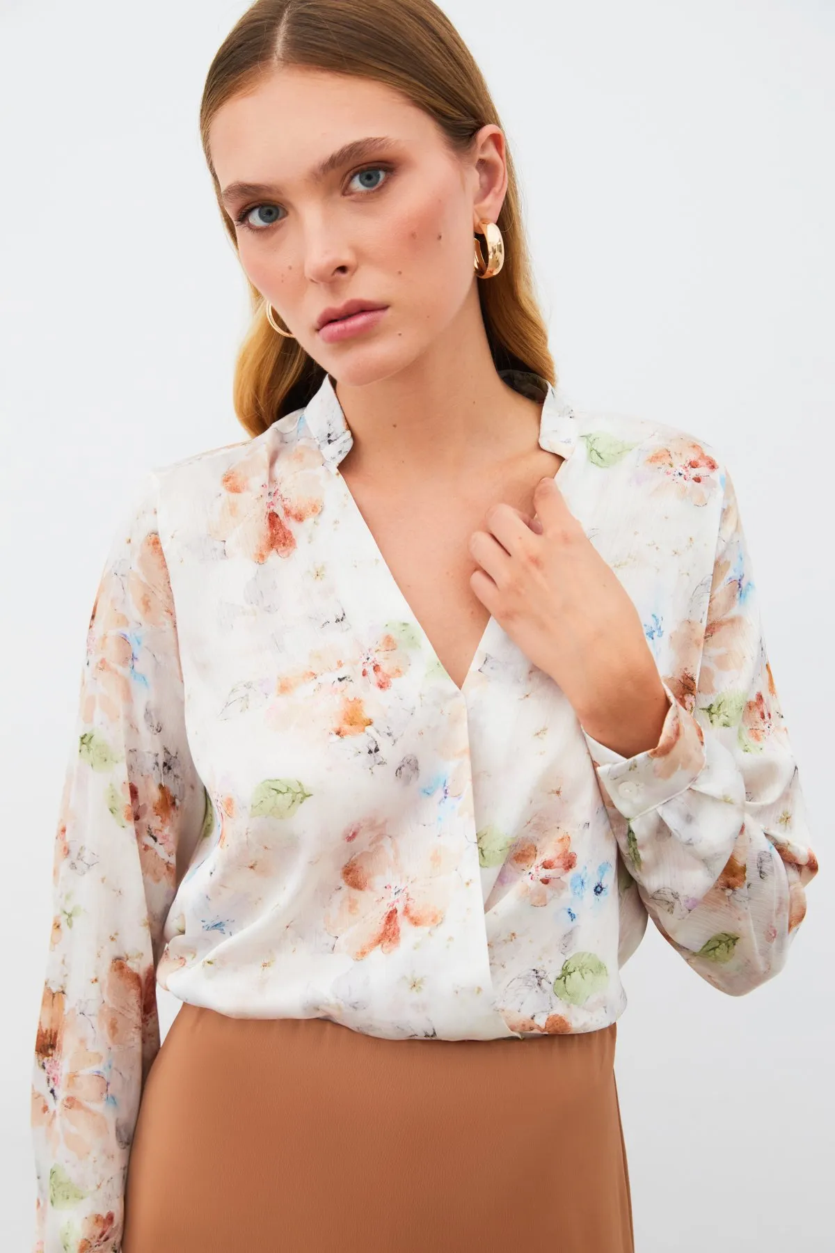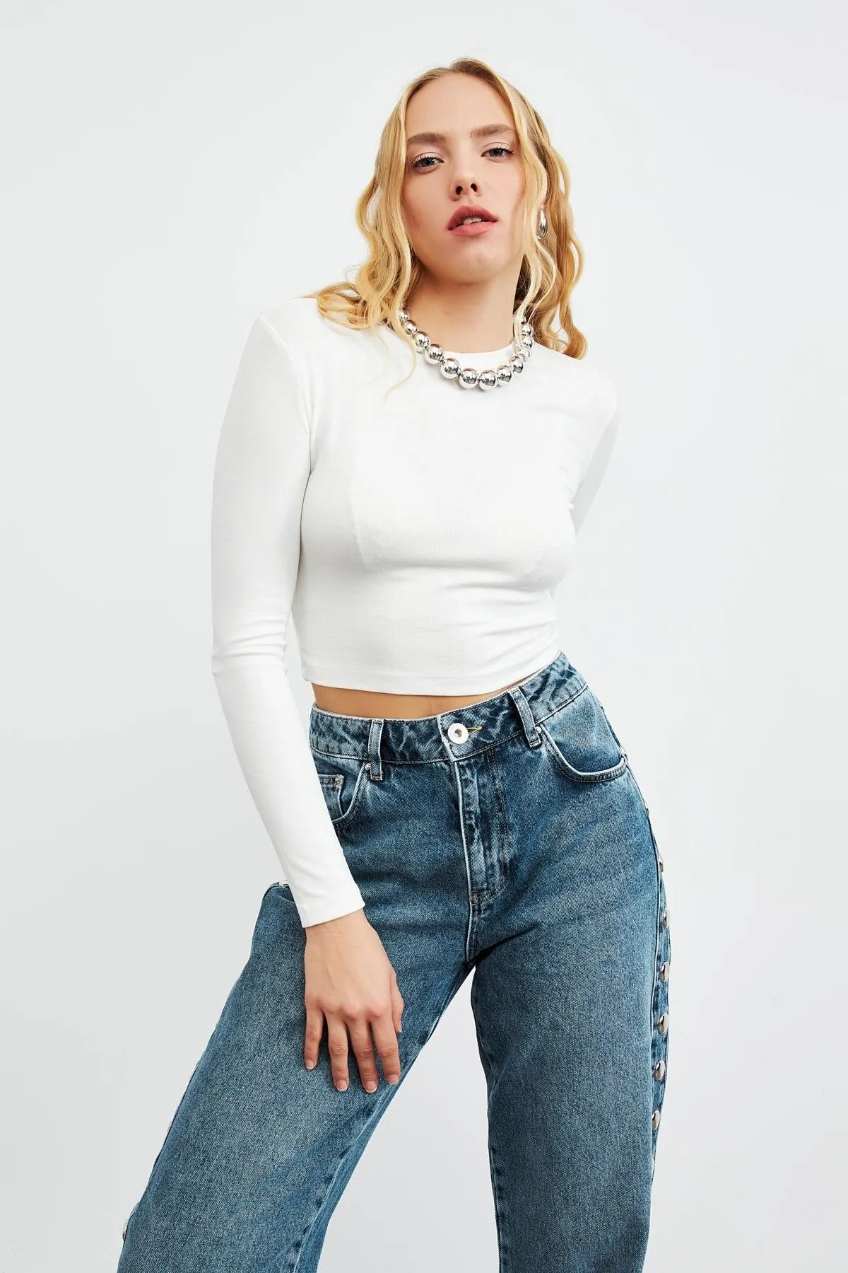 بلوزة كروب بياقة قارب وأكمام كلوش، مطوية ومجعدة لإطلالة العيد الكيوت في الصيف والطلعات اليومية.
