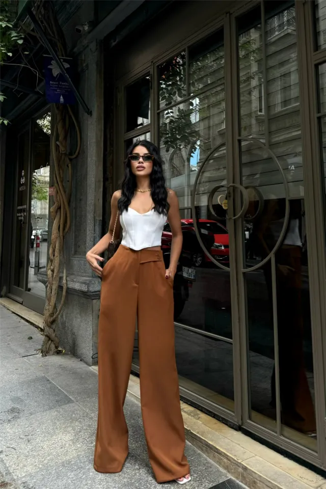 بنطلون نسائي ساتان مزخرف بنقشة بخصر مرن وقصة مستقيمة