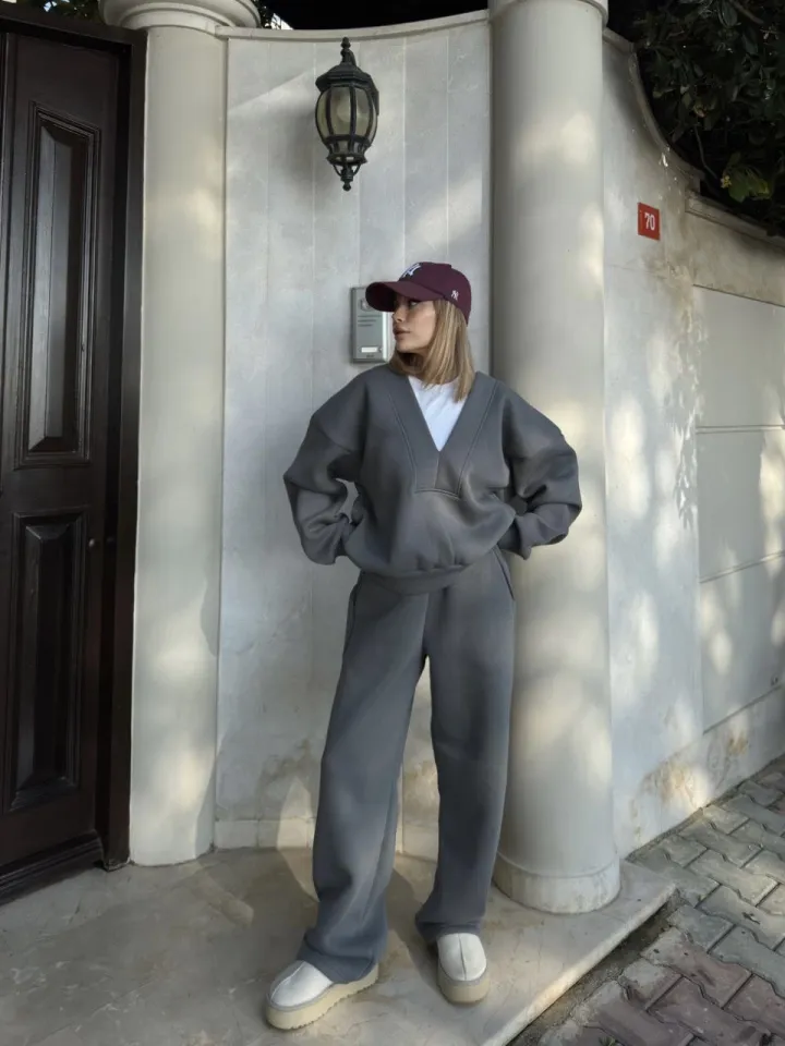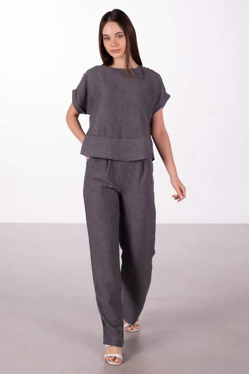 طقم قميص نسائي منقوش بأكمام طويلة مع بنطال واسع الساقين. قماش ناعم وجيد التهوية يمنحكِ الراحة والأناقة. مثالي للربيع والصيف.