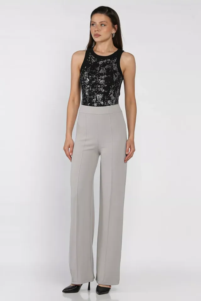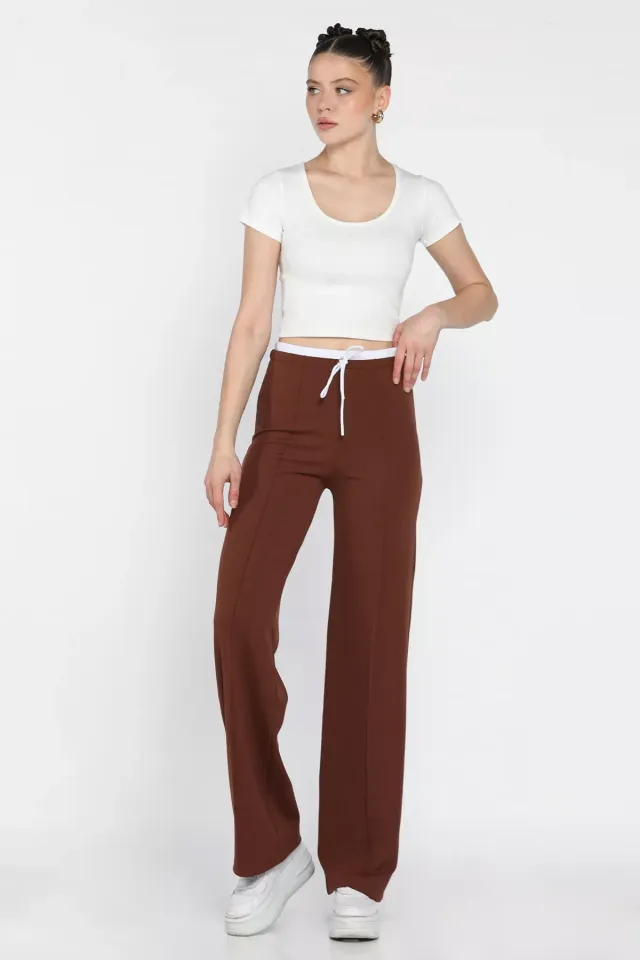 بنطلون نسائي كتان واسع مجعد مع حزام خصر عريض وراحة مرنة - Beyond Store
