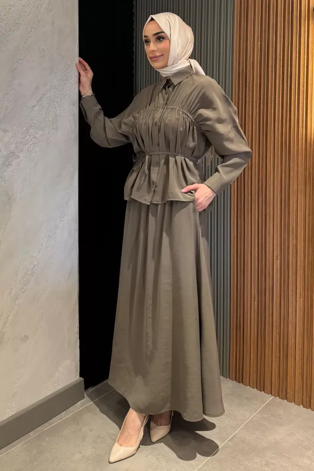طقم نسائي مكوّن من تونيك وبنطال واسع، تصميم محتشم يوفر راحة وحركة أنيقة، مناسب للارتداء اليومي، اللقاءات الكاجوال، أو المناسبات شبه الرسمية التي تجمع بين الحشمة والأناقة.