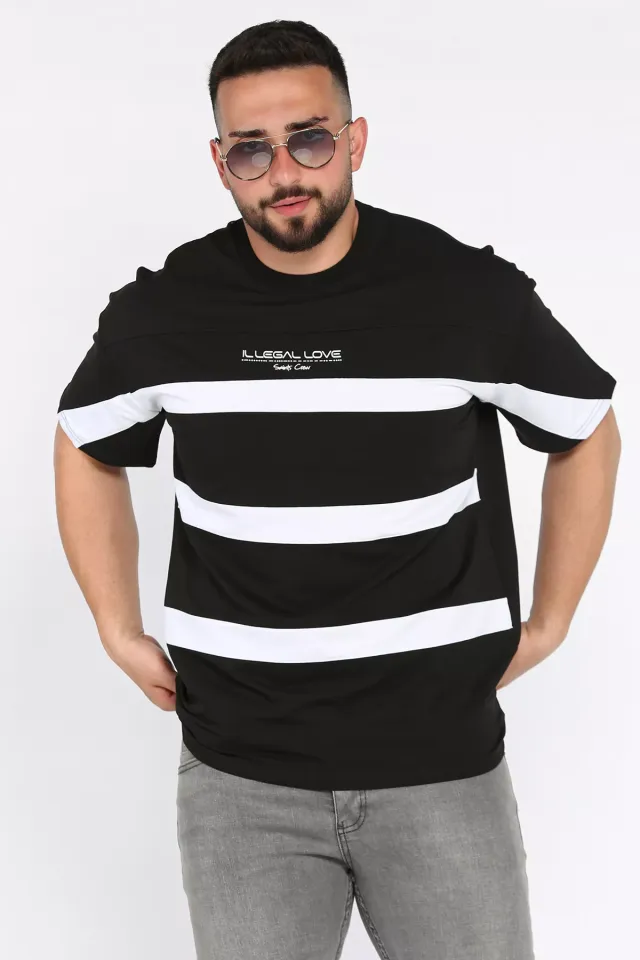 تيشيرت رجالي عصري بتصميم جرافيكي أنيق، مصنوع من 95% قطن و5% إيلاستان لراحة ومرونة مثالية للارتداء اليومي.