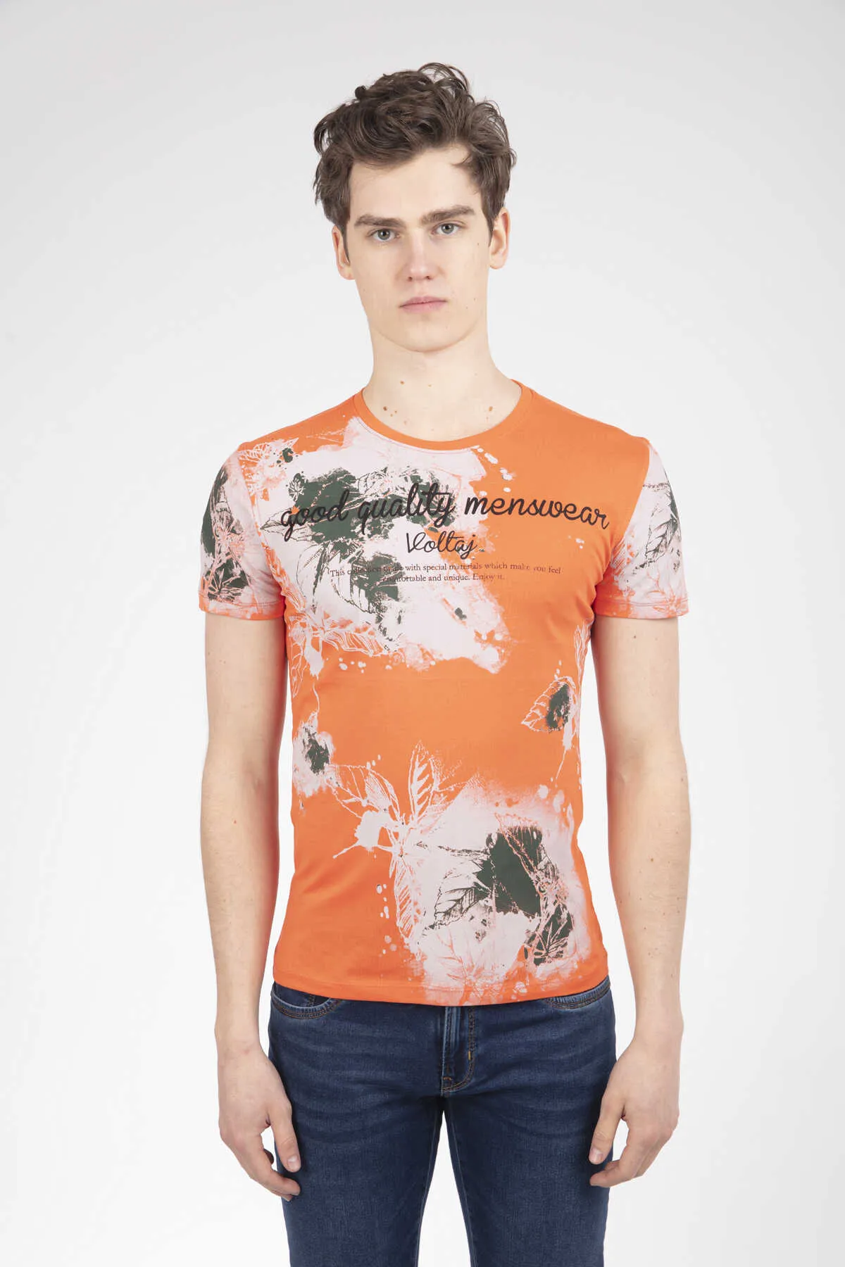 تيشيرت رجالي أساسي بأكمام قصيرة بطباعة شكل فني - Beyond Store