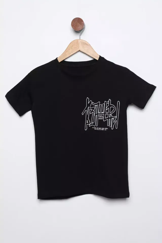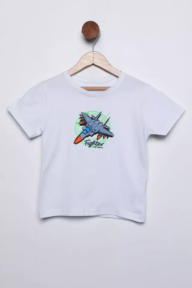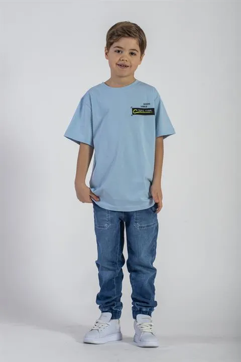 تيشيرت ولادي بأكمام قصيرة وياقة دائرية وقَصّة عادية.