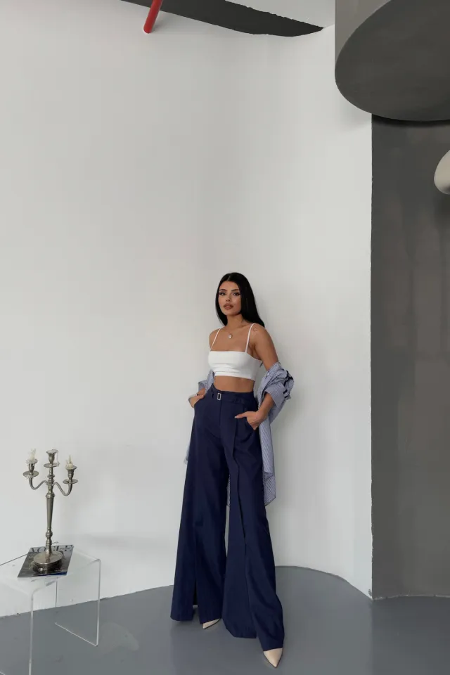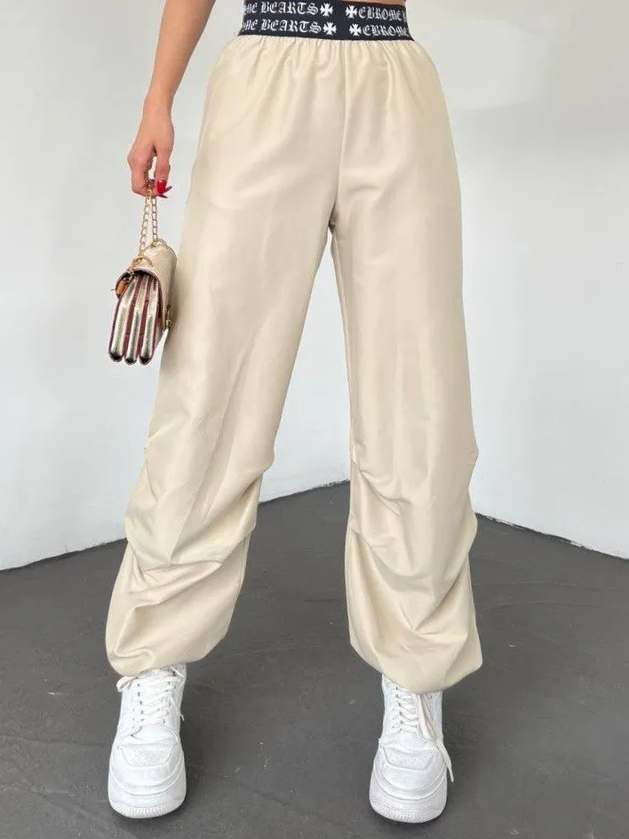 بنطلون نسائي من الكتان بخصر مطاطي وساق واسعة - Beyond Store