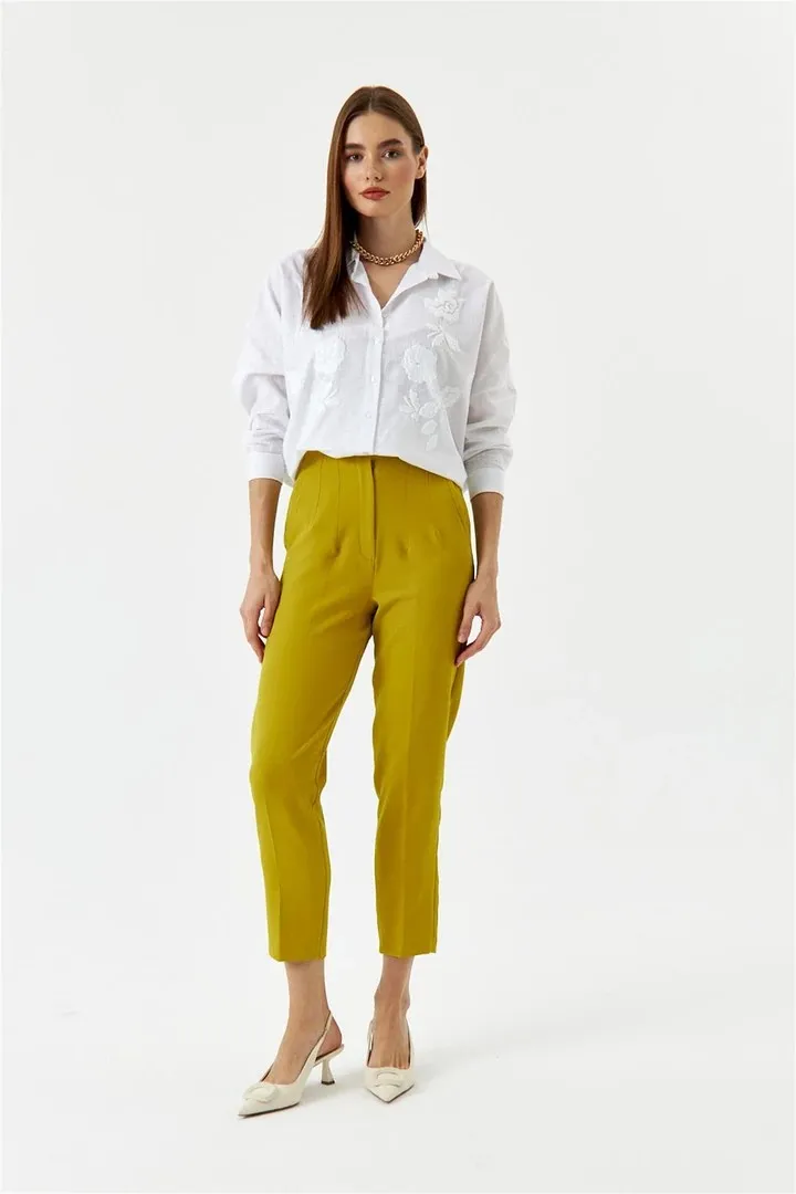 بنطلون نسائي من الكتان بخصر مطاطي وساق واسعة