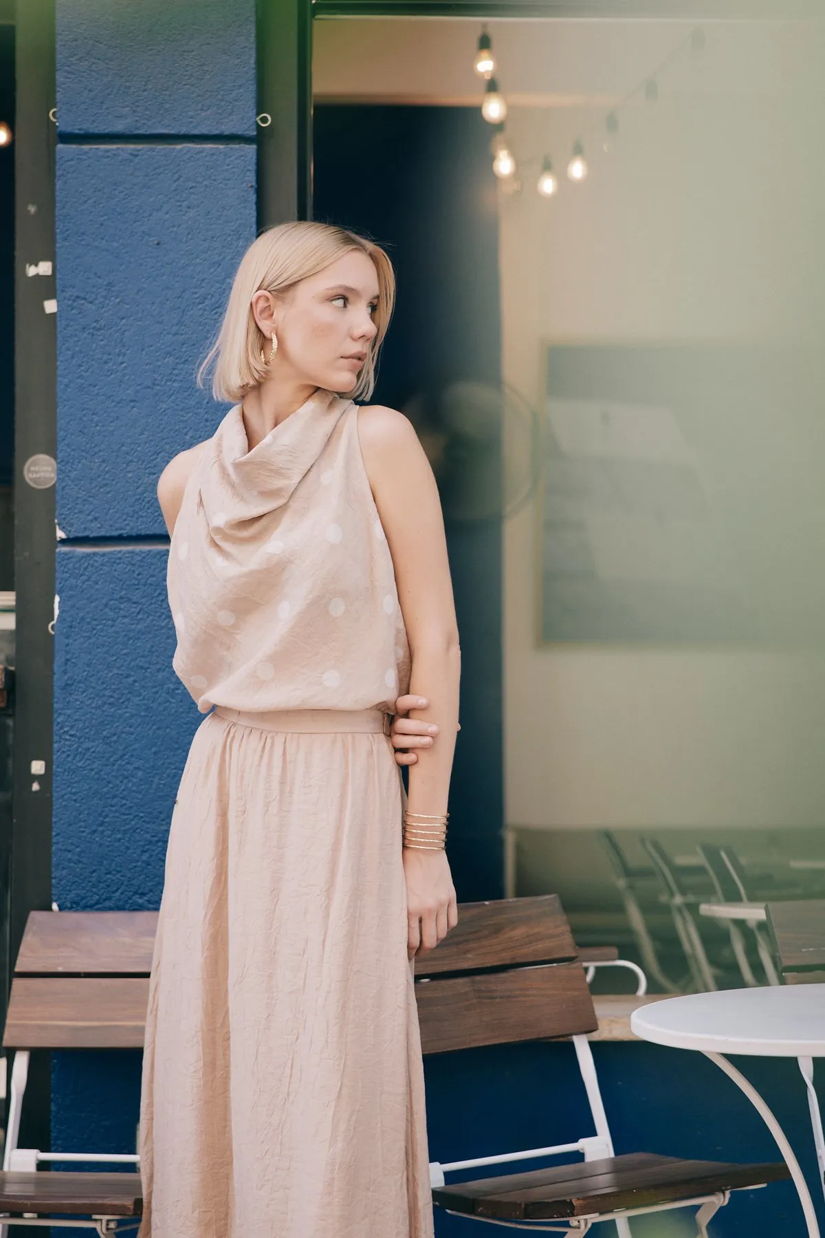 بلوزة نسائية مجعدة بأكمام طويلة وأزرار أمامية - Beyond Store