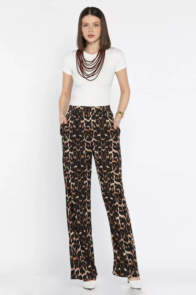 بنطلون بقصة مستقيمة مطاطي الخصر بجيوب مزدوجة