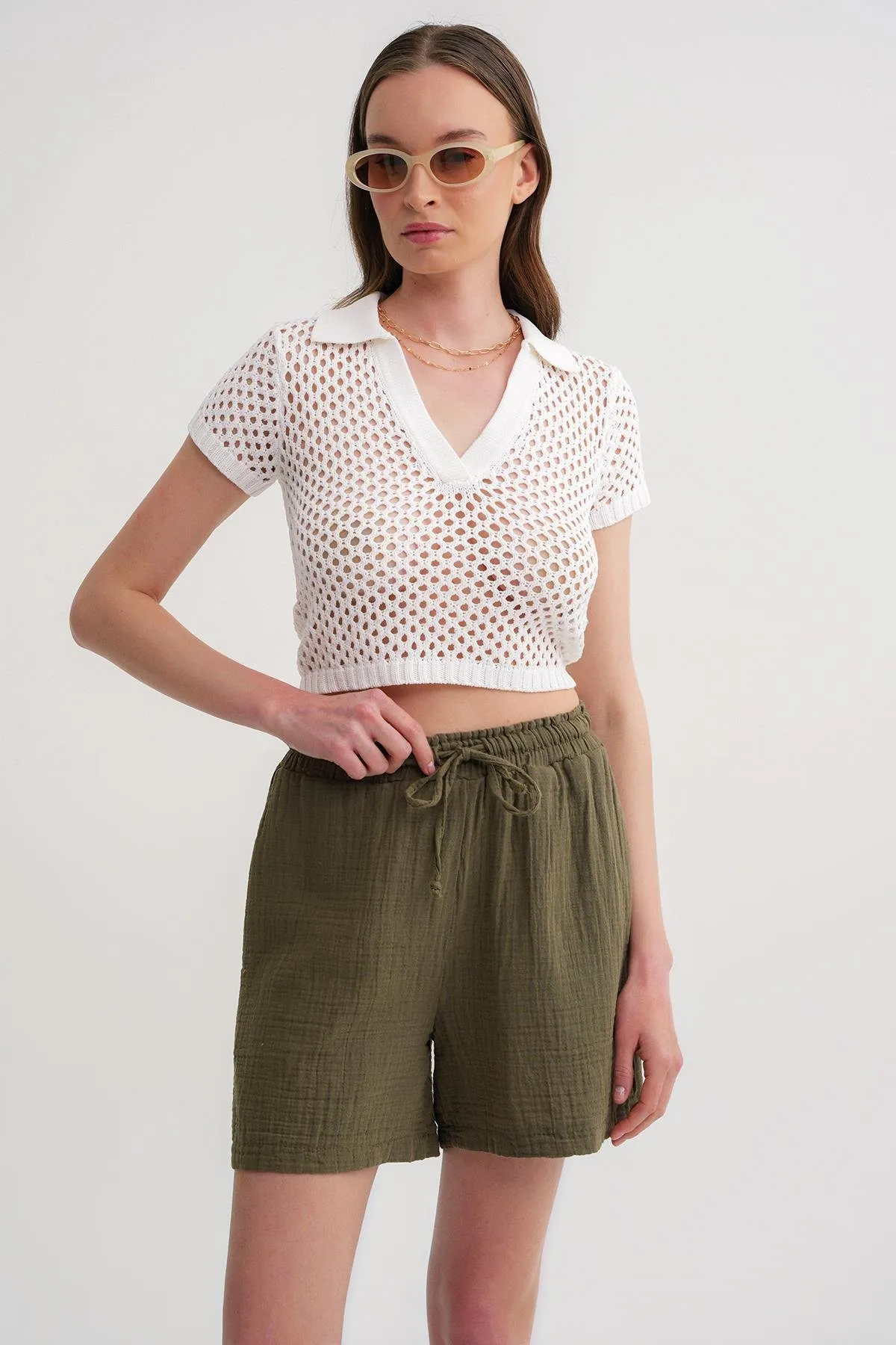 شورت ميني كاجوال بتفاصيل حروف مطبوعة وخصر مطاطي — مريح وعصري لأجواء صيفية مرحة