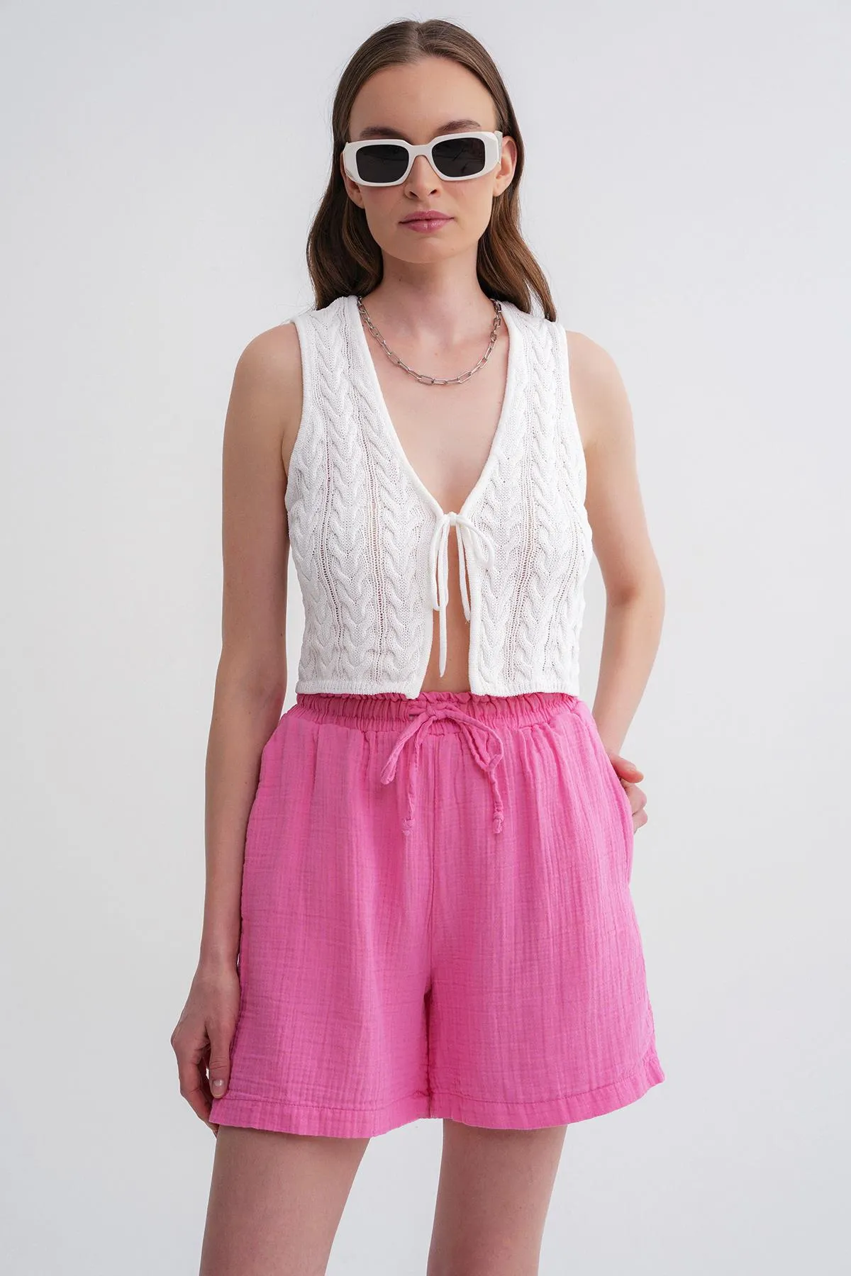 شورت نسائي بتفاصيل حروف مطبوعة و خصر مطاطي