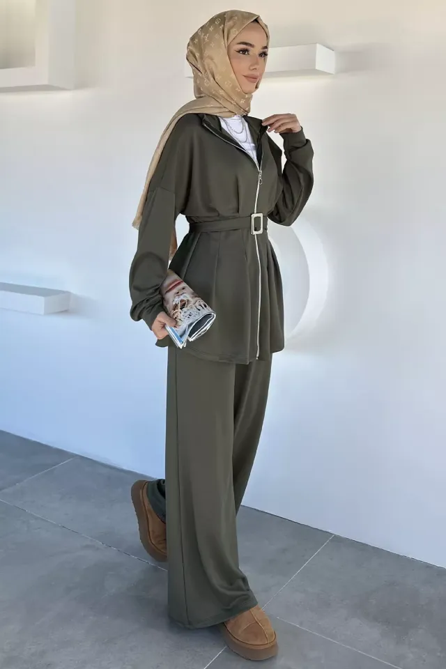 طقم بنطلون مكون من تونيك بأكمام طويلة وتفاصيل ناعمة من الحبيبات اللامعة، يمنحك إطلالة محتشمة وراقية مثالية للزيارات المسائية أو الطلعات الأنيقة بدون مجهود للنساء.
