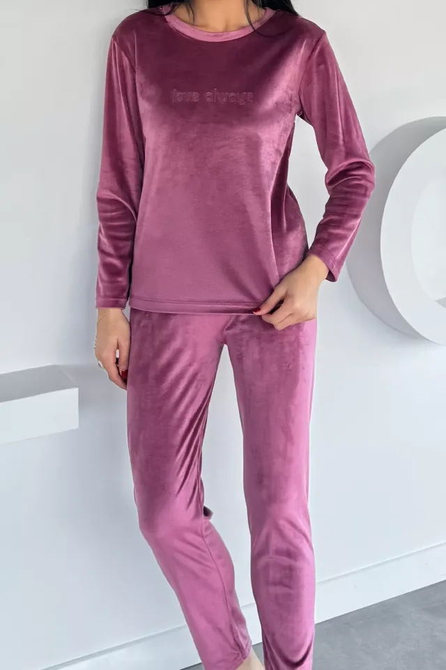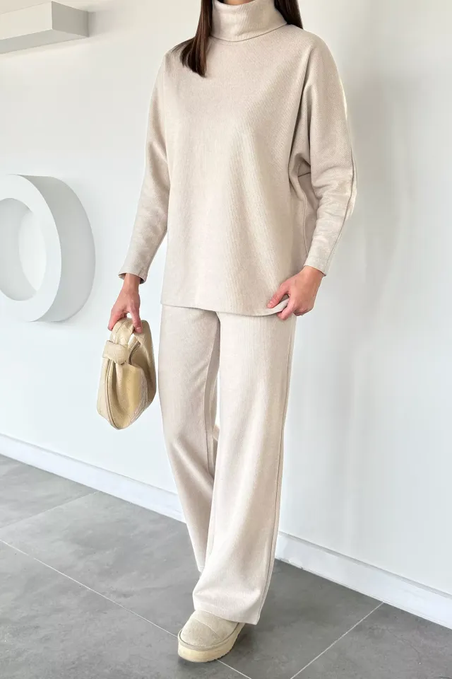 طقم بلوزة نسائي بأكمام قصيرة وخطوط جانبية مع بنطال. مصنوع من قماش ناعم ومريح.