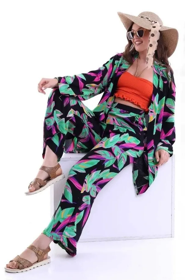 طقم بنطلون نسائي بأكمام قصيرة و تفاصيل خطوط جانبية - Beyond Store