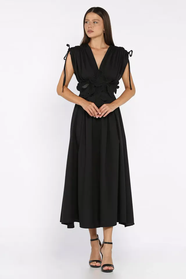 فستان قصير بياقة V مع تفاصيل طيات وأكمام مكشكشة — خيار أنثوي منعش لأيام الصيف والمشاوير