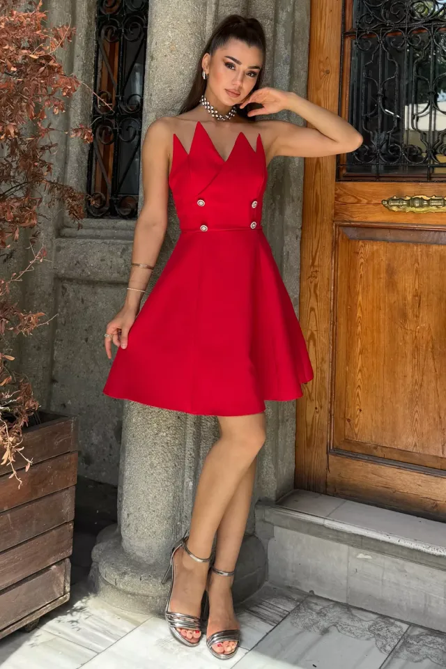 فستان نسائي غير متماثل بدون أكتاف وياقة مميزة، تصميم جريء وعصري يمنحك إطلالة لافتة تناسب الحفلات، العشاءات، أو المناسبات الخاصة التي ترغبين فيها بالتألق.