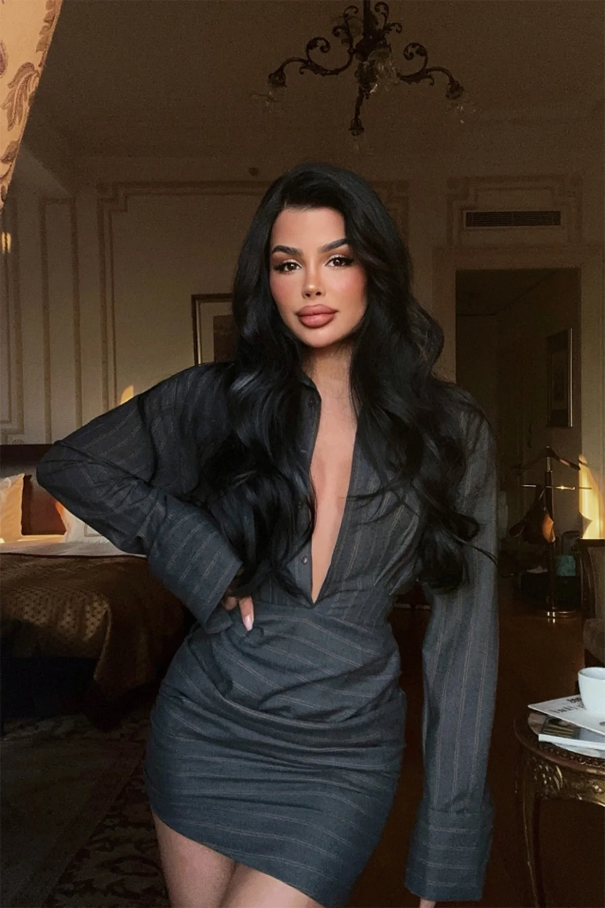 فستان نسائي غير متماثل بدون أكتاف وياقة مميزة، تصميم جريء وعصري يمنحك إطلالة لافتة تناسب الحفلات، العشاءات، أو المناسبات الخاصة التي ترغبين فيها بالتألق.