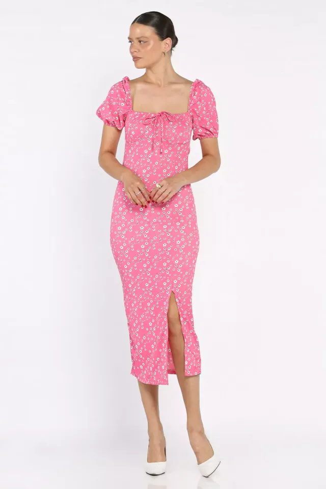 فستان ماكسي فضفاض بأكمام قصيرة، مثالي لأيام العطلة والنزهات الشاطئية أو الطلعات الصيفية الخفيفة التي تجمع بين الراحة والأناقة بكل سهولة.