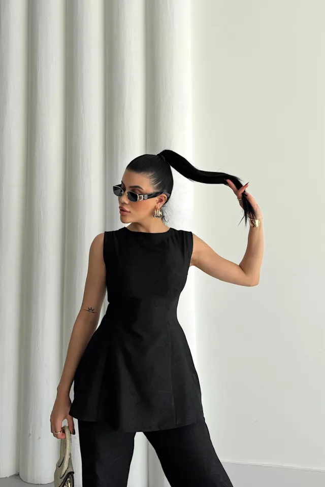 طقم بنطلون بأكمام قصيرة و أزرار أمامية للنساء