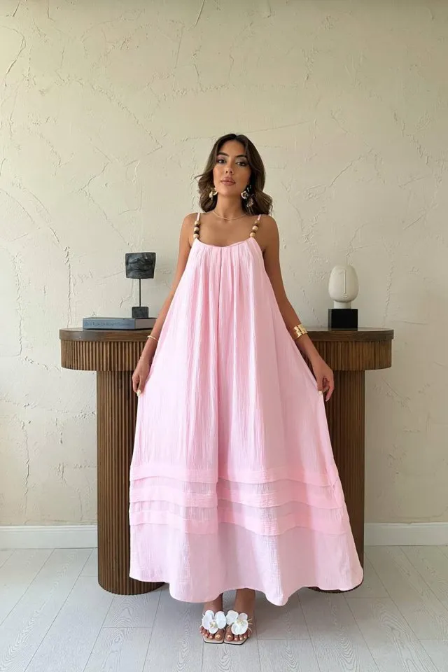 اختبري الأناقة الناعمة مع فستان بأكمام قصيرة مزين بتفاصيل مطرزة دقيقة، مثالي للقاءات الكاجوال أو المناسبات النهارية الراقية.