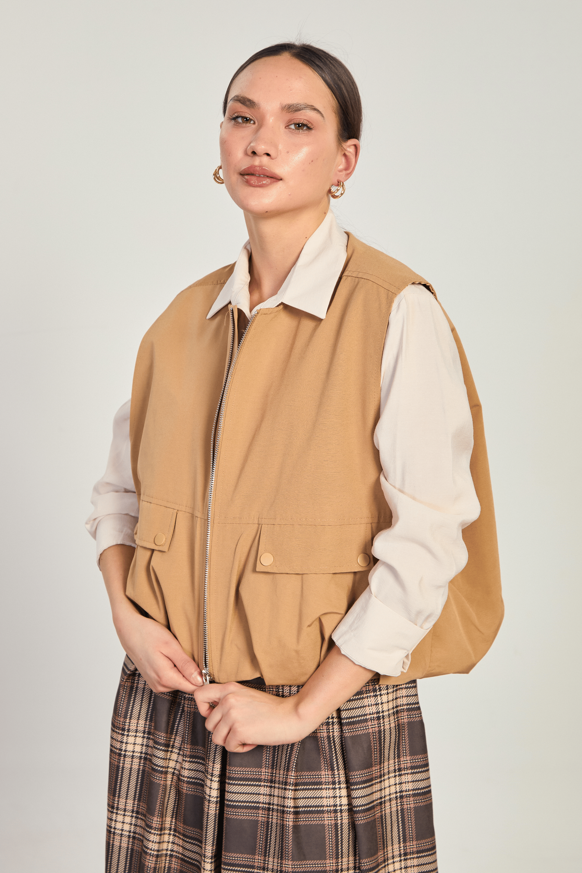فيست نسائي بدون أكمام بياقة على شكل V.