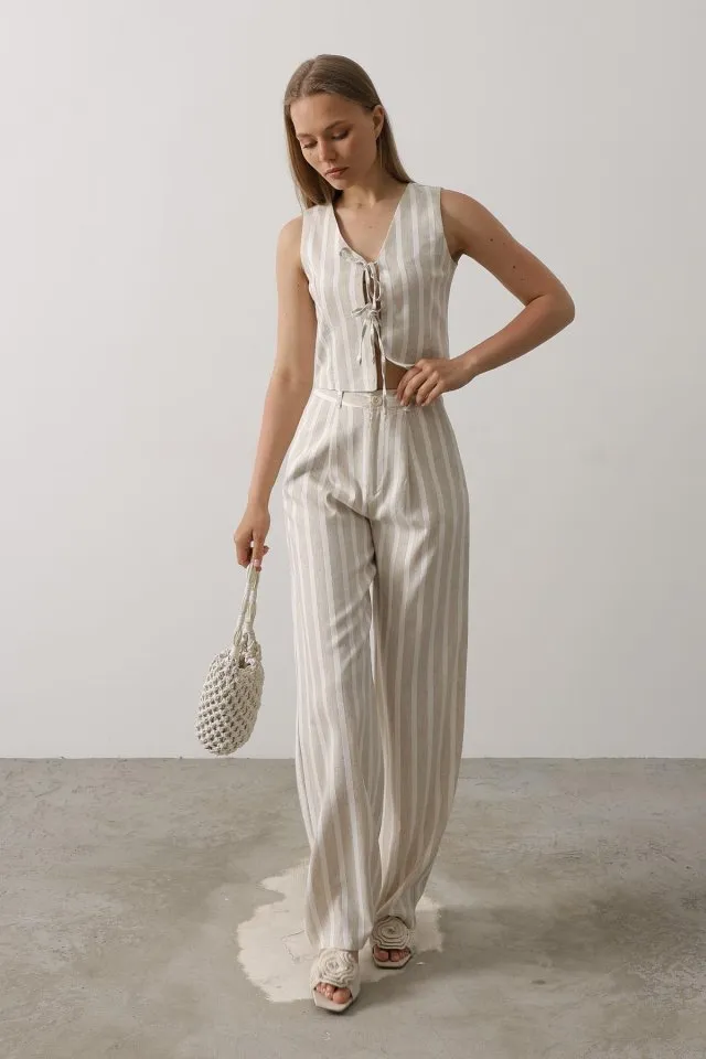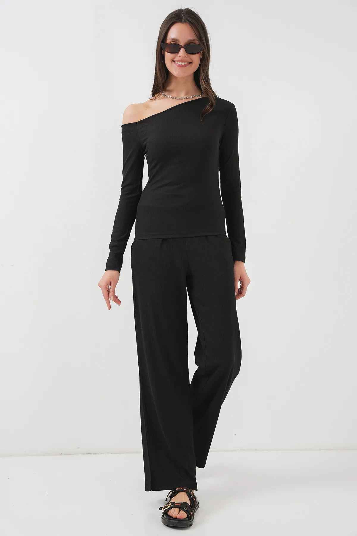 طقم توب فيسكوز بدون أكمام بطبقتين وبنطلون جوجر بخصر مرتفع